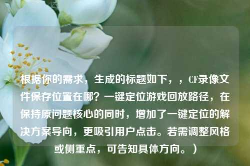根据你的需求,生成的标题如下,,CF录像文件保存位置在哪?一键定位游戏回放路径,在保持原问题核心的同时,增加了一键定位的解决方案导向,更吸引用户点击。若需调整风格或侧重点,可告知具体方向。)