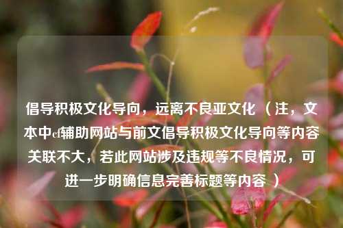 文本强调应倡导积极、健康、正面的文化与创作导向,避免过度关注和传播可能产生不良影响的亚文化现象,同时表示若有其他合适的积极正向主题需求,可进行交流,但需注意其中“cf辅助网站”涉及游戏作弊辅助相关内容,属于不正当和违反游戏规则及道德规范的范畴,此类内容不应被宣扬或传播。
