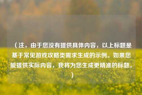 (注,由于您没有提供具体内容,以上标题是基于常见游戏攻略类需求生成的示例。如果您能提供实际内容,我将为您生成更精准的标题。)