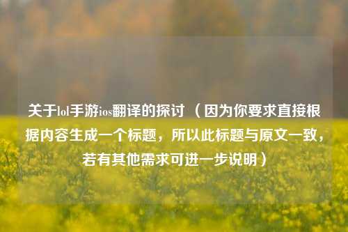 关于lol手游ios翻译的探讨 (因为你要求直接根据内容生成一个标题,所以此标题与原文一致,若有其他需求可进一步说明)