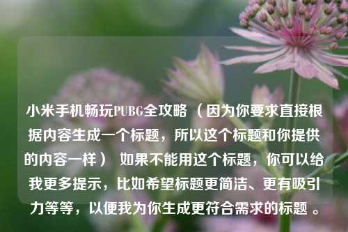 小米手机畅玩PUBG全攻略 (因为你要求直接根据内容生成一个标题,所以这个标题和你提供的内容一样) 如果不能用这个标题,你可以给我更多提示,比如希望标题更简洁、更有吸引力等等,以便我为你生成更符合需求的标题 。