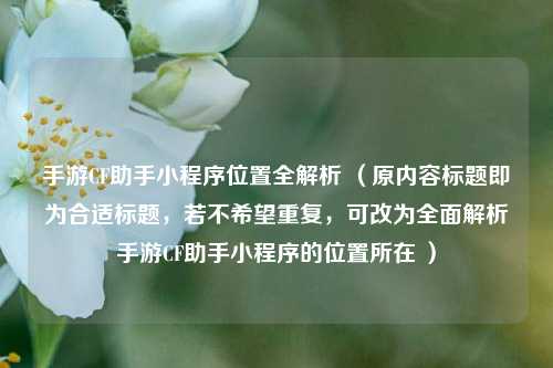 手游CF助手小程序位置全解析 (原内容标题即为合适标题,若不希望重复,可改为全面解析手游CF助手小程序的位置所在 )