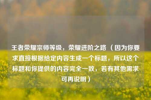 王者荣耀宗师等级,荣耀进阶之路 (因为你要求直接根据给定内容生成一个标题,所以这个标题和你提供的内容完全一致,若有其他需求可再说明)